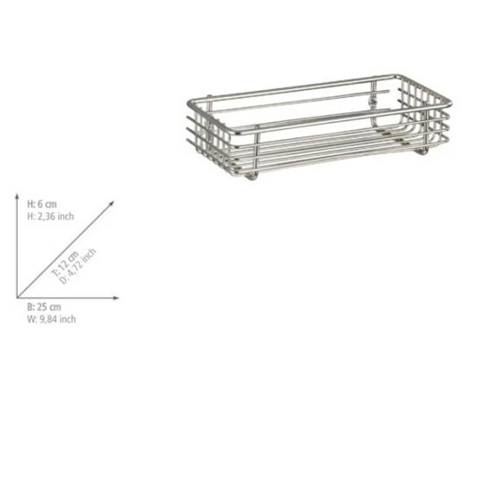 Mit 1 AblagekörbenBesonders schwere und massive QualitätAus satiniertem ChromMaße (B x H x T): 25 x 37 x 12 cmInkl. Schrauben und Dübel zur Wandmontage