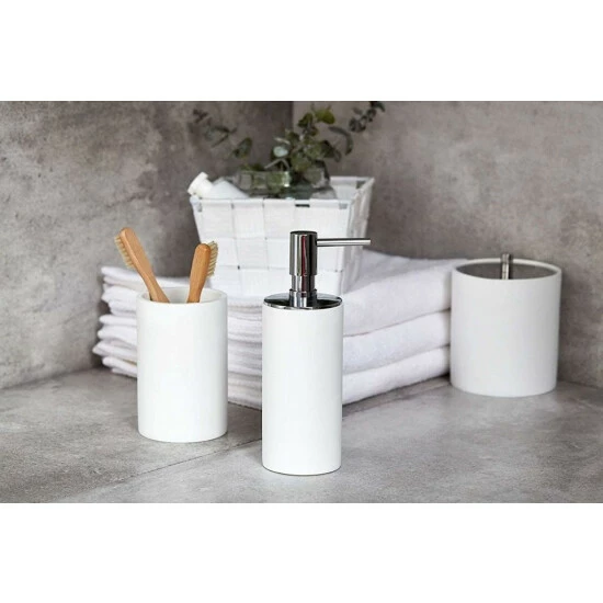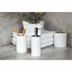 Die attraktive Universaldose von WENKO lässt sich hervorragend mit dem passenden Zahnputzbecher und Seifenspender sowie der WC-Garnitur Ida ergänzen.