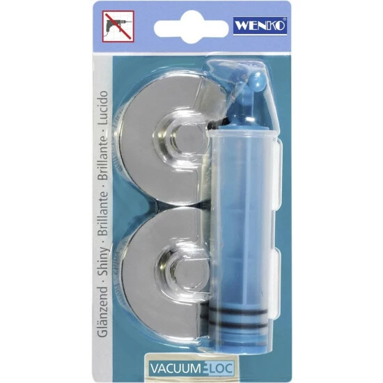 Wenko Vacuum-Loc aufhängeadapter Diese beiden Wenko Vacuum-LocAdapter sind kompatibel mit den verschiedenen Produkten von Wenko. Dank der mitgelieferten Pumpe können Sie den Adapter einfach mit Vakuum an der Wand befestigen. Die Adapter lassen sich einfach und ohne Bohrer an der Wand befestigen und sorgen für einen sauberen Abschluss des Gestells. Spezifikationen: Farbe: blau, chrom Werkstoff: Aluminium Durchmesser: 6 cm Zum Inhalt: 2 Adapter 1 Pumpe