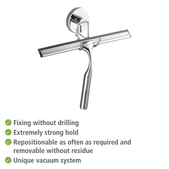 * Platzsparend und griffbereit * Ohne Bohren – ohne Schrauben * Hält auch auf unebenen Flächen * Immer wieder verwendbar * Keine Beschädigung der Fliesen * Inklusive Vakuumpumpe Das patentierte Befestigungs-System erzeugt ein einzigartiges Vakuum mit der Pumpe. Mit 33 kg Zugkraft pro Befestigungs-Loc ist es deutlich stärker als ein Saugnapf. Die starke Dichtung sorgt für stabilen Halt und gleicht auch Unebenheiten (z.B. auf Fliesen) aus ohne Bohren ohne Kleben. Sekundenschnell fixiert immer wieder verwendbar rückstandsfrei zu entfernen. Material: Metall/ Kunststoff verchromt