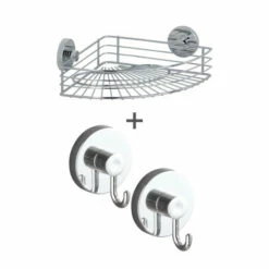 Zusätzlich erhalten Sie in dem 3-teiligen Set zwei Vacuum-Loc® Wandhaken aus verchromtem Kunststoff (je 6x7x5 cm), die optisch ideal zur Eckablage Bari passen. Hier finden Handtücher, Bademantel und Co. einen geordneten Platz. Die Vacuum-Loc®s sind beliebig oft repositionierbar und rückstandslos entfernbar.