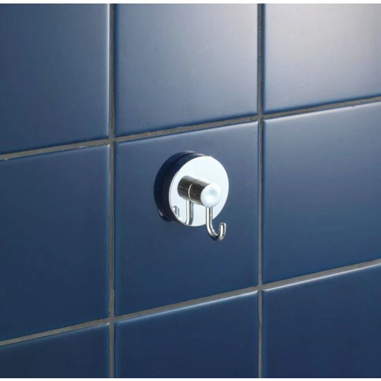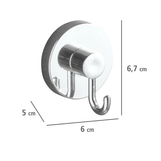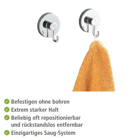 Mehr Ordnung im Badezimmer? Mit den glänzenden Haken gefertigt aus verchromtem Kunststoff (ABS) der Vacuum-Loc® Serie kein Problem. Die runden Haken im praktischen 2er Set eigenen sich optimal als Kleingarderobe im Bad. Das Haken-Set hält den Bademantel, die Handtücher und vieles mehr stets dekorativ griffbereit. Egal, ob im Badezimmer, Gäste-WC und Schlafzimmer oder in der Küche und Garderobe – im gesamten Haushalt machen die genialen Haken eine gute Figur und geben auch Kleidung, Geschirrtücher & Accessoires einen schönen Platz.