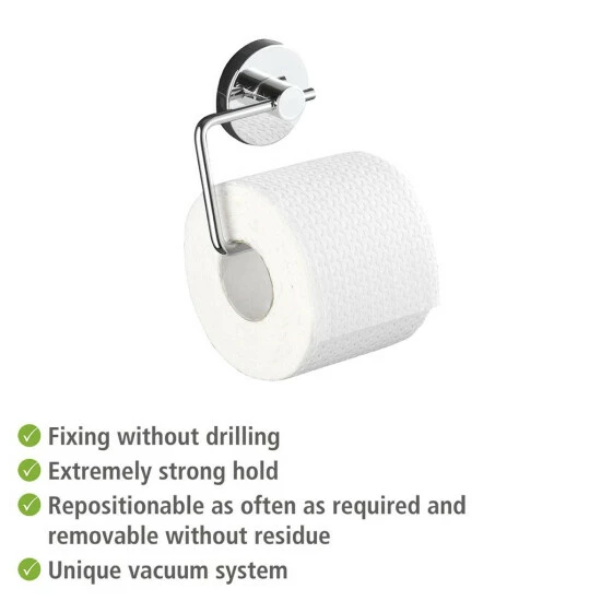WENKO 20899100 Vacuum-Loc Toilettenpapierhalter Milazzo – Befestigung ohne bohren, Stahl, 13.5 x 17.5 x 16 cm, Chrom