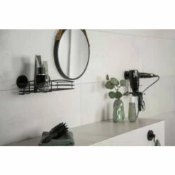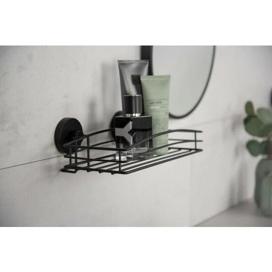 In der charmanten Wandablage werden Pflegeutensilien und Bad-Accessoires stets dekorativ griffbereit gehalten. Die praktischen Maße des Wandregals und seine moderne, schwarze Loft-Optik erlauben es, den Korb platzsparend, unaufdringlich und den eigenen Wünschen entsprechend, in nahezu jedes Bad zu integrieren.