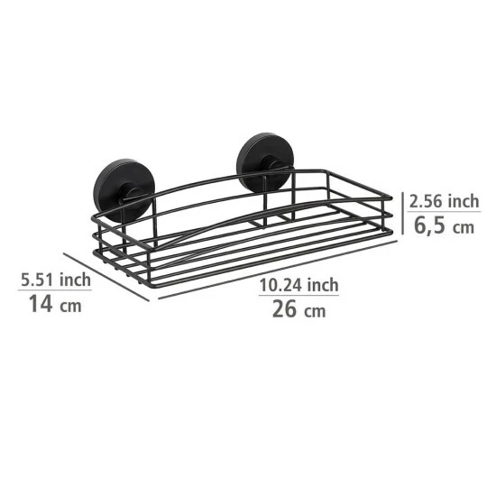 Lieferumfang: Vacuum-Loc Wandablage von WENKO aus matt lackiertem Stahl in Schwarz, Vacuum-Loc Befestigungen, Pumpe, Maße (B x H x T): 26 x 6,5 x 14 cm