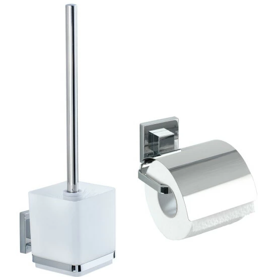 Die Vacuum-Loc® Serie Quadro verbindet puristische, elegante Formen und hochwertige Qualität. Die Bad-Accessoires dieser Serie begeistern nicht nur durch die Leichtigkeit ihrer Anbringung, sondern auch durch ihr quadratisches Design und der Herstellung aus glänzendem, rostfreiem Edelstahl. Somit sind sie auch optimal für den Nassbereich geeignet. In diesem praktischen 2er Badezimmer-Set der Serie erhalten Sie die WC-Garnitur Quadro und den passenden Toilettenpapierhalter.