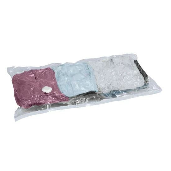 Der Vakuumbeutel ermöglicht dank seiner Luftablasseigenschaften die Einsparung von bis zu 75% des Platzes im Schrank. Auf diese Weise gelagerte Stoffe verlieren ihre Qualität nicht und behalten nach Gebrauch ihr ursprüngliches Volumen. Hinweis: Das Produkt wird nicht für Seide und Leder sowie für Textilien empfohlen, die mit Federn oder Daunen gefüllt sind, da mögliche Risse von Federn zu einer begrenzten Wärmeeffizienz führen können.