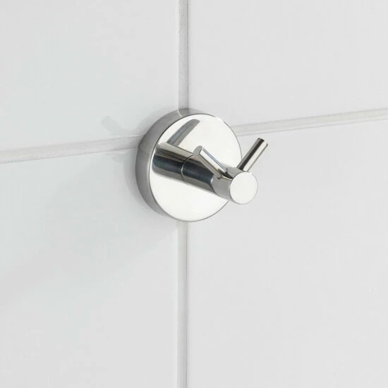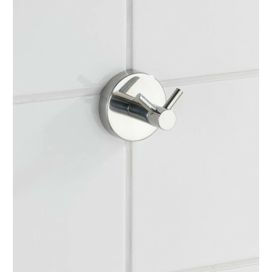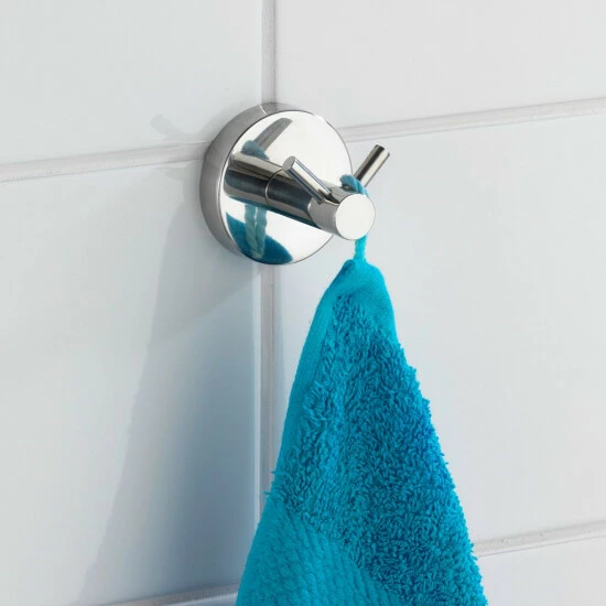 Der elegante, glänzende Doppel-Haken hilft beim Ordnung halten im Bad, WC und im gesamten Haushalt. So hat alles seinen Platz und wird griffbereit aufbewahrt, egal ob Handtuch, Waschlappen oder Badetuch.