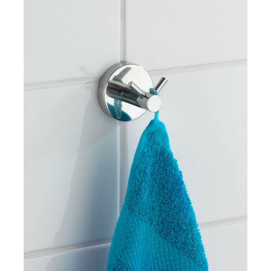 Der elegante, glänzende Doppel-Haken hilft beim Ordnung halten im Bad, WC und im gesamten Haushalt. So hat alles seinen Platz und wird griffbereit aufbewahrt, egal ob Handtuch, Waschlappen oder Badetuch.