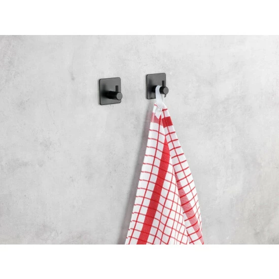 - Installation ohne Bohren. Badhaken können schnell und ohne Werkzeug an der Wand befestigt werden. Es reicht aus, die Schutzfolie abzuziehen und die Haken mit doppelseitigem Klebeband zu verkleben.