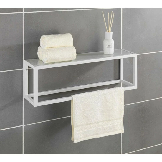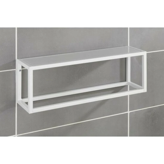 Auf der stilvollen Ablage aus Sicherheitsglas schafft das Regal vielfältige Abstellmöglichkeiten für Kosmetikartikel, Bad-Accessoires, Dekoration und Handtücher.