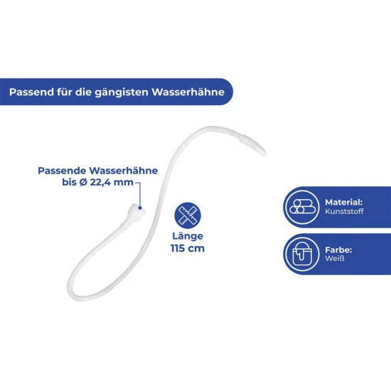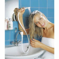 Sie müssen nicht jedes Mal extra unter die Dusche: Waschen Sie Ihre Haare einfach bequem im Waschbecken! Die spezielle Waschbecken-Dusche ist praktisch für zu Hause und für unterwegs! Der Anschluss M eignet sie sich für die gängigsten Wasserhähne und auch für die Badewanne. Schlauch aus PVC.Anschluss M passend für ca. ภ10 – 15 mm | Länge: 115 cmTechnische Daten:Modell: MMaterial: Kunststoff / PVCAnschluss: ภ10 – 15 mm  Länge: ca. 115 cmFarbe: weiß Gewicht: ca. 130 g