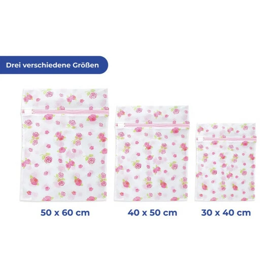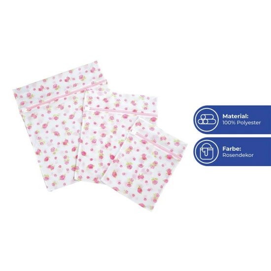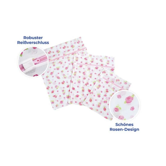 Oft findet man kleine Wäschestücke nach dem Waschen schlecht wieder, oder die Feinwäsche ist nach dem Waschen beschädigt. Das muss nicht sein: Das Wäschenetz-Set im schönen Rosen-Design sieht nicht nur schön aus, es schützt auch Feinwäsche beim Waschen, Spülen und Schleudern und kleine Wäschestücke sind im Wäschenetz Rosen schnell gefunden.