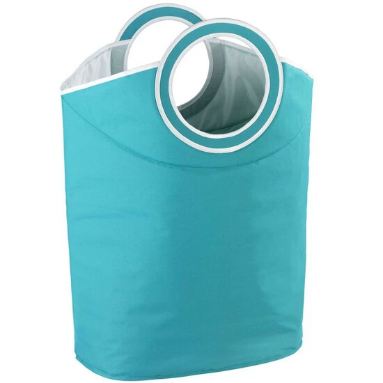Geräumiger Wäschesammler aus hochwertigem Polyester. Zwei magnetische Tragegriffe ermöglichen einen einfachen Transport der Wäsche und dienen zusammengefaltet als Einwurföffnung. Verstärkungsstreben für stabilen Halt.