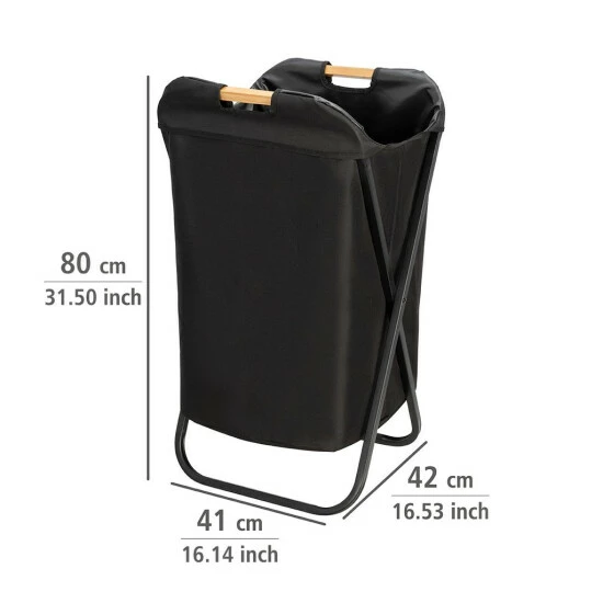 Spezifikationen:Farbe: schwarz Besonders empfohlen für: unisex Rahmenmaterial: rostfreier Stahl Wäschesackmaterial: Polyester Abmessungen: 41 x 71 x 42 cm (B x H x T) Inhalt: 72 Liter