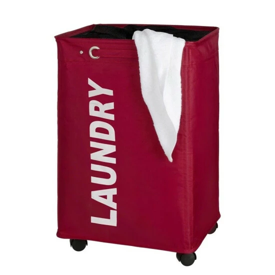 Dieser elegante Wäschekorb in Rot überzeugt durch sein schlichtes Design und sein hohes Fassungsvermögen. Er ist aus hochwertigem Polyester gefertigt und kann dank seiner vier Rollen leicht bewegt werden. Schieben Sie ihn einfach ins Bad, Schlafzimmer oder direkt in die Waschküche. Die unschöne Schmutzwäsche können Sie dank der Sichtschutzabdeckung gekonnt verbergen.