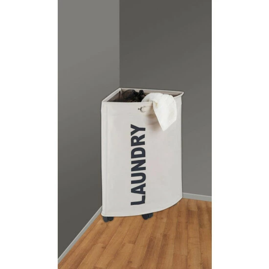 Der platzsparende Eck-Wäschesammler Tresco Beige von WENKO bringt Stil in jeden Haushalt und nutzt freien Stauraum in Schlaf- und Badezimmerecken.