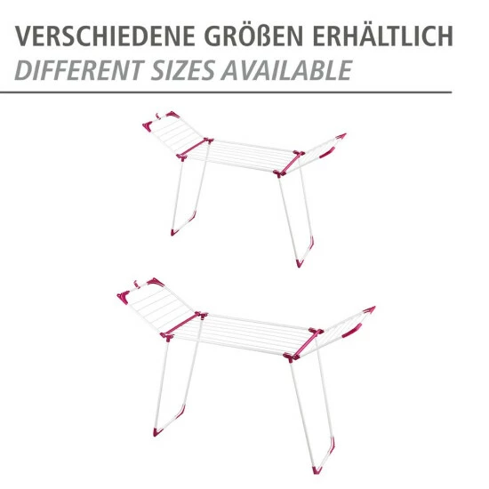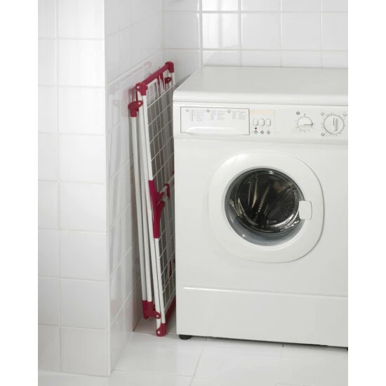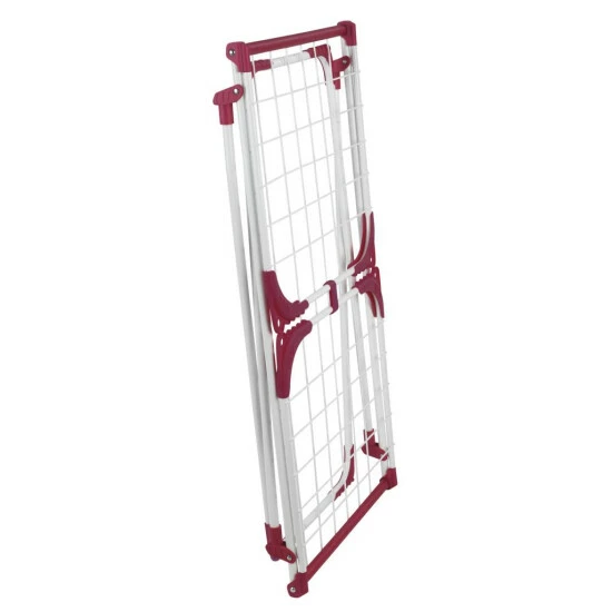 Durch das robuste Metall mit bordeaux-farbenen Kunststoff-Ecken, hat der Wäsche Trockner Summer Dry einen besonders stabilen Halt. Durch einen integrierten Clip an beiden Flügeln können diese verbunden werden und “wedeln” beim Transport nicht herum. So klappt beim Verstauen nichts aus. Zudem können am Clip auch Utensilien wie ein Wäscheklammerbeutel aufgehängt werden. Die bordeaux-farbenen Eck-Kappen besitzen eine Kleiderbügelvorrichtung für mehr Platz zum Trocknen. Bei einer Gesamttrockenlänge von 13 m findet jedes Wäschestück seinen geeigneten Platz.