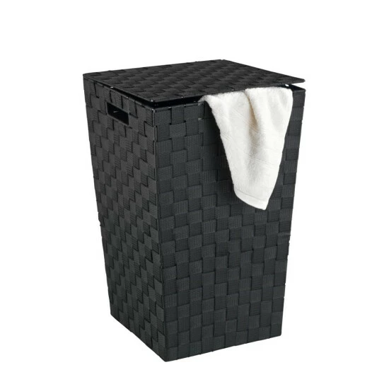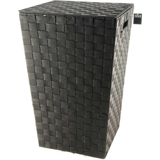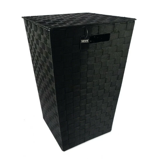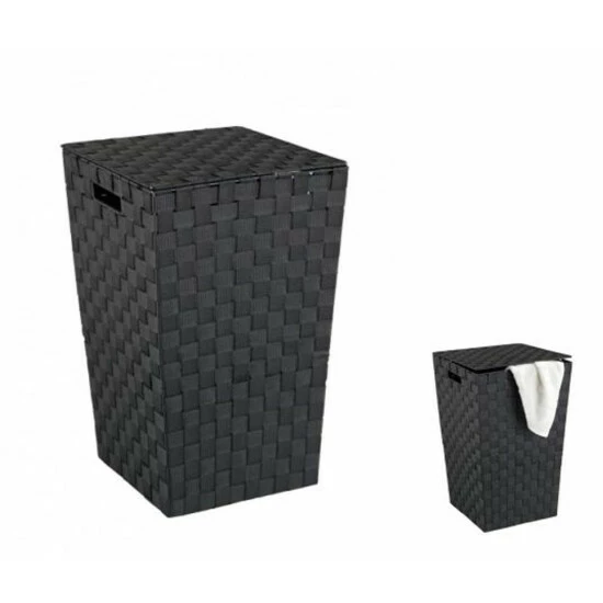 Der schwarze Wäschekorb schafft zusätzlichen Stauraum für die Wäsche. Besonders praktisch ist der Deckel, der vor unerwünschten Blicke ins Innere der Wäschetruhe schützt.