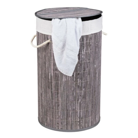 BAMBOO Waschkorb in grauer Farbe der deutschen Marke WENKO ist eine hervorragende Ergänzung für jedes Badezimmer oder Schlafzimmer. Es erleichtert die Aufbewahrung von schmutziger Kleidung, die zum Waschen bestimmt ist, hilft dabei, Ordnung zu halten und dem Interieur einen attraktiven Stil zu verleihen. Ein solches Additiv ist eine Kombination aus ästhetischer Funktionalität mit einem zusätzlichen Stauraum.