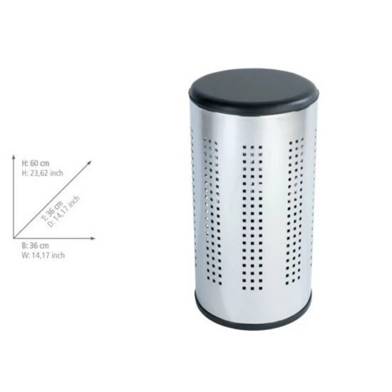 Der Artikel, der in jedem stilvoll eingerichteten Badezimmer funktioniert , ist sicherlich ein Wäschekorb mit einem BERGAMO-Sitz, Wenko. Es ist ein Produkt der hoch angesehenen Marke Wenko, die über hochwertige Dekorationen, Accessoires und Zubehör für Haushaltsgeräte verfügt. Der präsentierte Korb hat Abmessungen von 50 cm x 36 cm (Höhe x Durchmesser) und ist aus Edelstahl gefertigt.