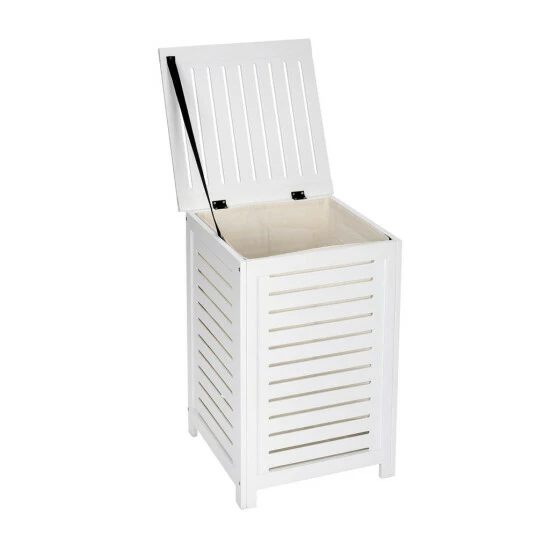 Attraktiver Wäschekorb aus der OSLO Badaccessoires-Serie. Ausgestattet mit einem herausnehmbaren Materialeinsatz, mit dem Sie Wäschestücke schnell und bequem entnehmen können. Der Deckel öffnet sich nach oben. Modische, gerippte Konstruktion aus Holz. Der Wäschekorb wird seine Rolle im kleinen Badezimmer oder im Schönheitssalon als Stauraum für Handtücher, Bademäntel usw. perfekt erfüllen.