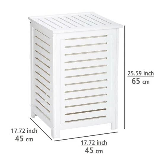 Viel Platz für Wäsche bietet die Wäschetruhe aus der Serie Oslo. Mit der herausnehmbaren, waschbaren Baumwolltasche lässt sich die Wäsche einfach zur Waschmaschine transportieren.
