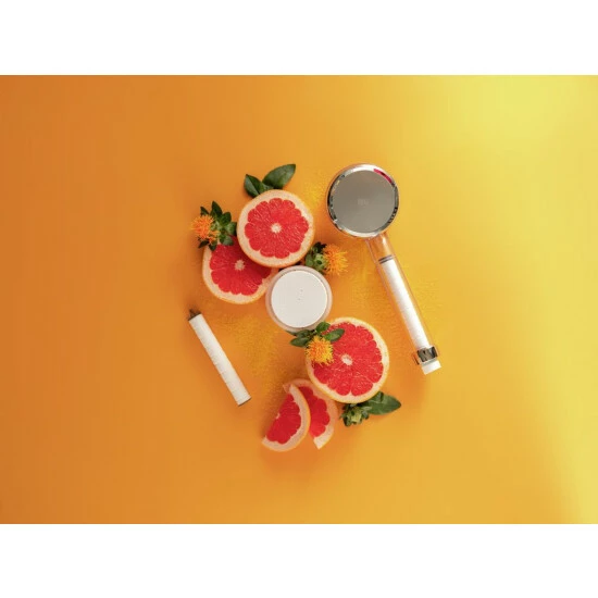 Optional kann der ACF-Filter im Duschkopf durch einen Vitamin C-Aroma-Filter getauscht werden. Wähle aus drei hochwertigen Duftnoten: Grapefruit, Brombeere oder Lavendel. Neben dem natürlichem Vitamin-C wird deine Haut mit ausreichend Feuchtigkeit versorgt. Zudem ist Vitamin C ein wirkungsvolles Antioxidans das freie Radikale unschädlich machen kann und wesentlich am Aufbau von Kollagen beteiligt ist. Auch ein wunderbarer Nebeneffekt ist der dezente Duft, der nach dem Duschen in deinem Bad verbleibt.