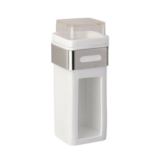 Der Wattepadhalter eignet sich für die zeitgleiche Aufbewahrung von Wattestäbchen und Wattepads. Der abnehmbare Behälter ist aus weißem Kunststoff gefertigt, der leicht zu reinigen ist.