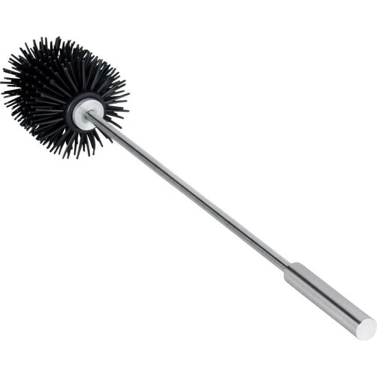 Edelstahl WC-Garnitur Mod. Vivario mattFarbe: EdelstahlMaterial : Edelstahl rostfreiMaß: Ø 8,5 x 52,5 cmBürstenkopf ist auswechselbarinkl. Silikon-Bürstenkopf von Ø 7,5 cm und extra langem Edelstahl-StielHochwertiger Toilettenbürstenhalter mit schmaler, offener Halterung