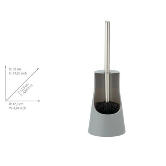 Mit der praktischen WC-Garnitur wird das WC gründlich gereinigt. Der hochwertige, schwarze Bürstenkopf ist aus Silikon gefertigt. Seine spezielle Anti-Haft-Wirkung sorgt dafür, dass sich hartnäckige Reste und Toilettenpapier nicht in der Bürste festsetzen, sondern beim Reinigen einfach weggespült werden. So bleibt die clevere Bürste immer hygienisch sauber und reinigt sich selber.