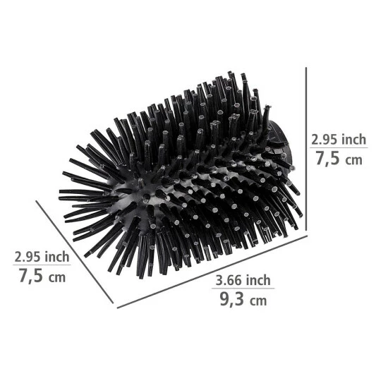 Im Lieferumfang ist eine WC-Bürste mit schwarzem, auswechselbarem Silikon-Bürstenkopf von Ø 7,5 cm und hochwertigem Edelstahlstiel enthalten. Zudem beinhaltet dieses Set einen Ersatzbürstenkopf für WC-Garnituren Silikon Ø 7,5 cm.
