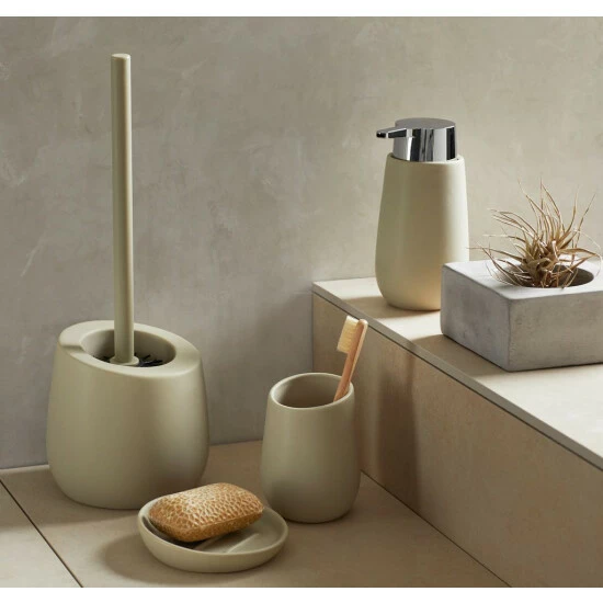 Der Bürstenbehälter besteht aus hochwertiger Keramik, so dass Ihnen das Accessoire jahrelang zur Verfügung steht. Die einheitliche Oberfläche ermöglicht eine schnelle und bequeme Reinigung, und die graue Farbe der Basis verleiht einen eleganten Charakter. Es ist erwähnenswert, dass der Durchmesser des Behälters 13,5 Zentimeter beträgt und die Höhe des Sets 38 Zentimeter beträgt. Mit dieser Lösung passt das Accessoire auch auf einer kleinen Fläche.