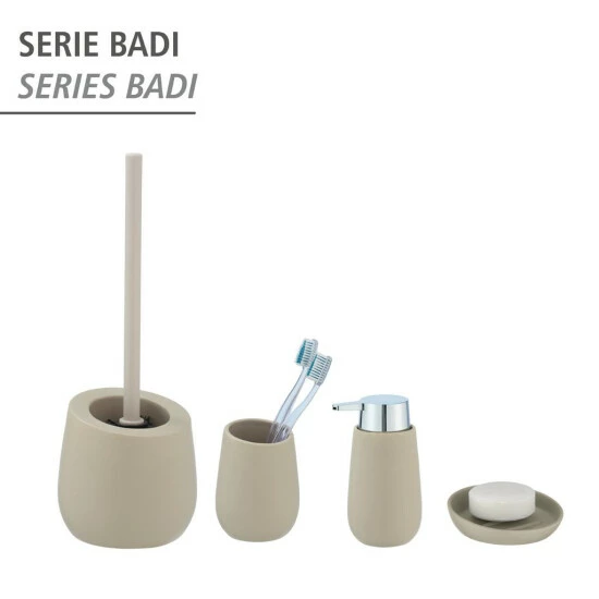 Ergänzend zur WC-Garnitur Badi bietet WENKO auch den passenden Seifenspender und Zahnputzbecher sowie die Seifenablage an. So verleihen Sie Ihrem Bad einen neuen Lifestyle. Sie mögen es, mit Farben zu spielen? Dann variieren Sie doch die verschiedenen Farbenwelten der Badi-Serie – egal ob Weiß, Schwarz, Grau, Blaugrau, Grüngrau, Lindgrün, Sand, Beige oder Chrom!