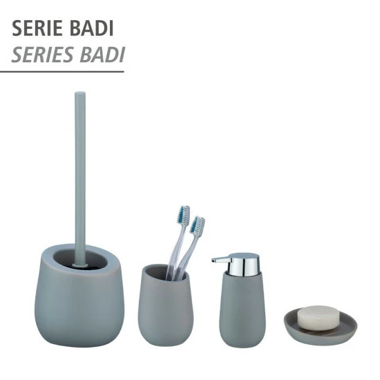 Ergänzend zur WC-Garnitur Badi bietet WENKO auch die Seifenablage sowie den Seifenspender und Zahnputzbecher an. So holen Sie sich den Frische-Kick ins Badezimmer oder Gäste-WC. Sie mögen es, mit Farben zu spielen? Dann variieren Sie doch die verschiedenen Farbenwelten der Badi-Serie – egal ob Weiß, Schwarz, Grau oder Chrom!