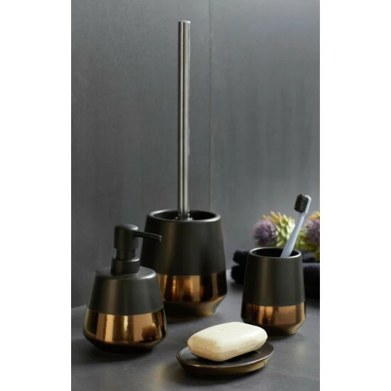 Die Bad-Accessoire Serie Brandol von Wenko besticht durch ein edles Design in Schwarz Matt mit kupferfarbenen Akzenten. Die Accessoires der Serie werten jedes Badezimmer auf und passen ideal zu einer modernen Einrichtung.