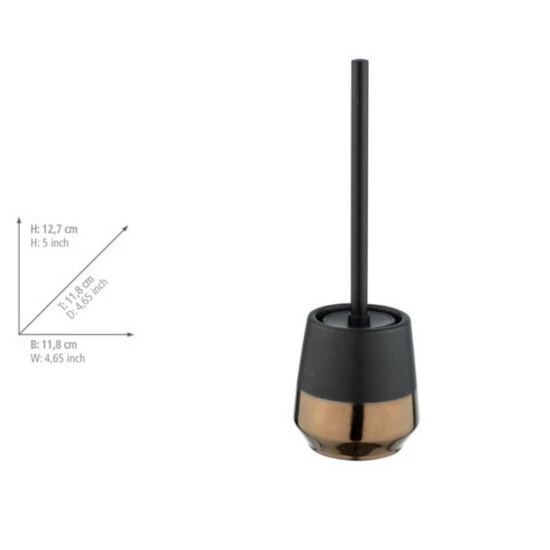Ein solches Produkt ist zweifellos Bürsten WC BRANDOL. Das Produkt besteht aus hochwertiger Keramik in schwarz und mattem Kupfer. BRANDOL WC-Bürstenständer hat Abmessungen: 13 x 12 cm (Höhe x Durchmesser), so dass es auch in kompakten Bädern funktioniert, ohne wertvollen Platz zu beanspruchen.