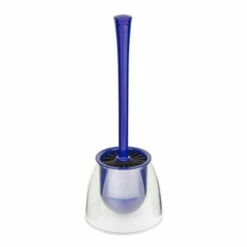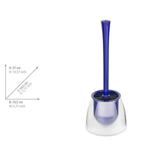 Mit der praktischen WC-Garnitur Fiesta in frischem Blau/Transparent wird das WC gründlich gereinigt. Der hochwertige, schwarze Bürstenkopf ist aus Silikon gefertigt. Seine spezielle Anti-Haft-Wirkung sorgt dafür, dass sich hartnäckige Reste und Toilettenpapier nicht in der Bürste festsetzen, sondern beim Reinigen einfach weggespült werden. So bleibt die clevere Bürste immer hygienisch sauber und reinigt sich selber.