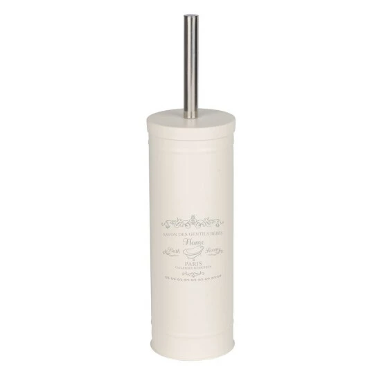 Ein elegantes Badezimmerset mit geschlossenem Behälter + Toilettenbürste aus der HOME PARIS Zubehörserie ist aus hochwertigem lackiertem Stahl gefertigt. Stylisch, cremefarben, mit einem attraktiven Ausdruck passt perfekt zum rustikalen Interieur, komplett mit einer schwarzen Bürste mit einem Durchmesser von 8 cm mit austauschbaren Borsten und einem Metallgriff.