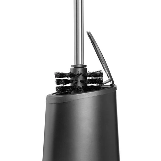 Besonders clever: Im geschlossenen Zustand wird der schwarze Bürstenkopf durch den Deckel des Behälters verdeckt. Durch den integrierten Klappmechanismus kann dieser bei Entnahme der Bürste einfach geöffnet und geschlossen werden. So dringen keine Gerüche nach außen und die WC-Bürste ist nicht direkt sichtbar.