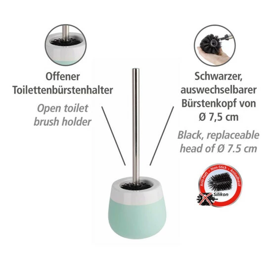 Die im Lieferumfang enthaltene WC-Bürste ist mit einem schwarzen, auswechselbaren Bürstenkopf von Ø 7,5 cm versehen. Mit dieser praktischen WC-Bürste kann das WC gründlich gereinigt werden.