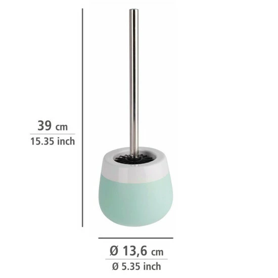 Elegantes Badezimmerset geöffneter Behälter + Toilettenbürste aus der MALTA Zubehörserie. Aus hochwertiger Keramik in Mint-Farbe. Attraktives Design passt perfekt in moderne und nicht-moderne Bäder. Das Set enthält eine schwarze Bürste mit einem Durchmesser von 7,5 cm mit austauschbaren Borsten und einem Metallgriff.