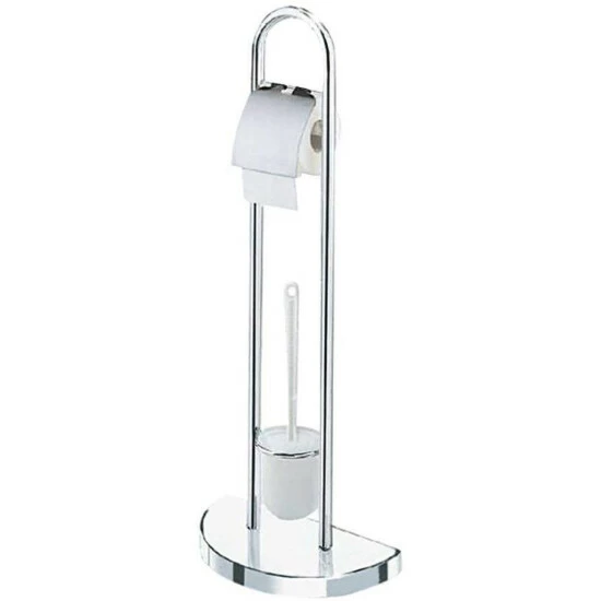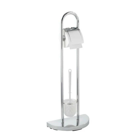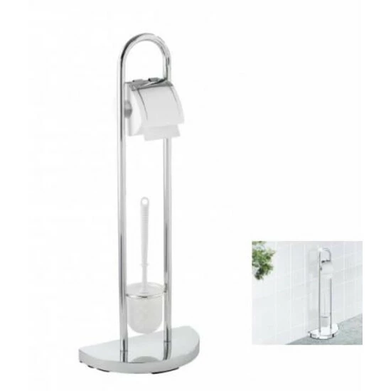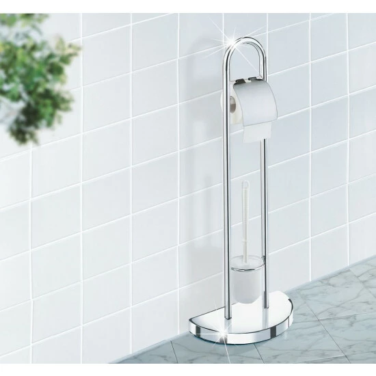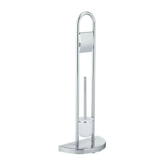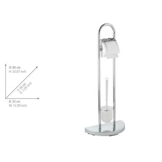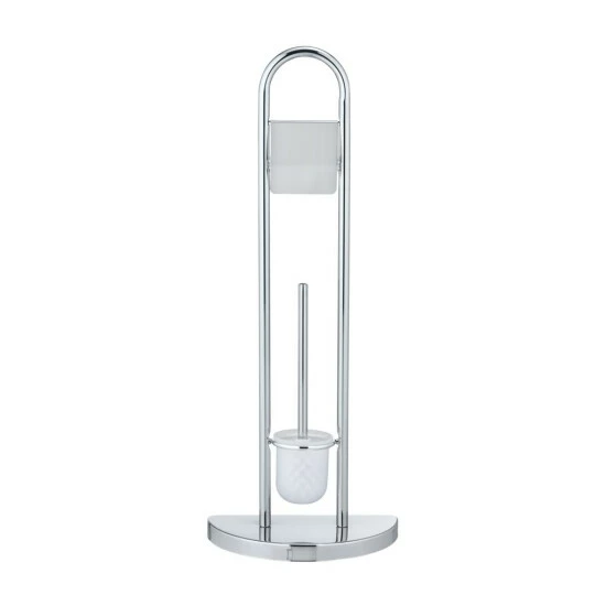 Diese stehende Exklusive Toilettenbürstengarnitur Cosenza von Wenko ist eine Kombination aus einem Toilettenpapierhalter und einem Toilettenbürstenhalter. Der Toilettenbürstenhalter ist ein hochwertiges Produkt mit einem offenen Design. Die Garnitur enthält eine Toilettenbürste mit einem austauschbaren weißen Bürstenkopf und einem weißen Griff.