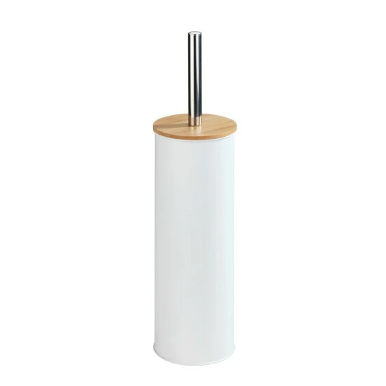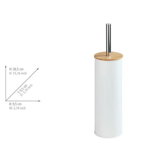 Die Bad-Serie Tortona aus hochwertigem, lackiertem Stahl in Weiß matt, kombiniert mit Bambus, ist ein optisches Highlight in jedem Badezimmer und Gäste-WC. Durch die WC-Garnitur in schlichtem Weiß und dem darauf abgestimmten Bambusdeckel schaffen Sie ein natürliches Ambiente in Ihrem Bad. Mit der WC-Garnitur Tortona wird das Badezimmer nicht nur optisch aufgewertet, sondern sie ist zudem auch immer an gewünschter Stelle griffbereit. Durch ihre geschlossene Form dringen weder Gerüche nach außen noch ist die WC-Bürste direkt sichtbar. Die dazugehörige WC-Bürste hat einen auswechselbaren, schwarzen Bürstenkopf von Ø 7,5 cm. Mit dieser praktischen WC-Bürste kann das WC gründlich gereinigt werden. Ergänzend zu der schönen WC-Garnitur bietet WENKO weitere passende Accessoires aus der Serie Tortona an.