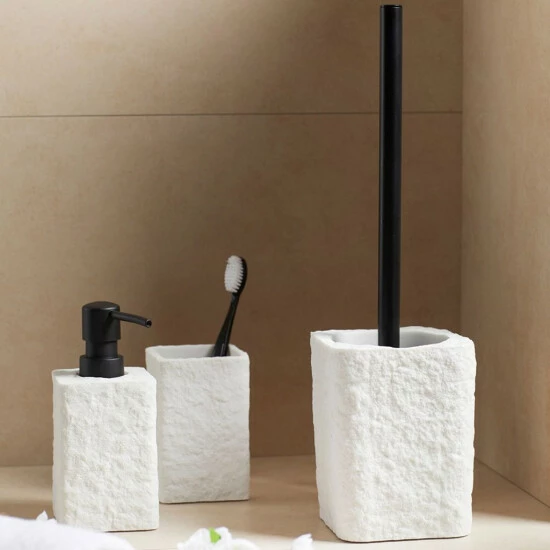 Eine stilvolle Toilettenbürste mit Toilettenbürstenhalter für die Innenausstattung Ihres Badezimmers und Ihrer Toilette. Sowohl der Halter als auch die Bürste sind aus haltbarem Polyresin hergestellt.