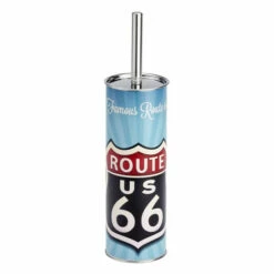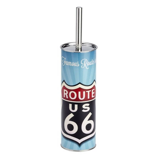Die WC-Garnitur Bus aus der WENKO Vintage-Serie bietet als praktischer Helfer bei der Reinigung des WCs ein echtes optisches Highlight. Das Motiv Route 66 im Retro-Stil bringt Farbe und Ambiente in das sonst oft eher triste heimische Badezimmer oder Gäste-WC.