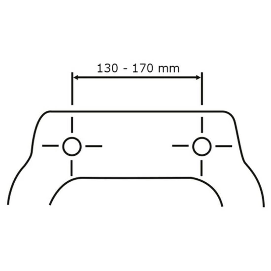 - Abstand zwischen den Scharnieren von 13 bis 17 cm,