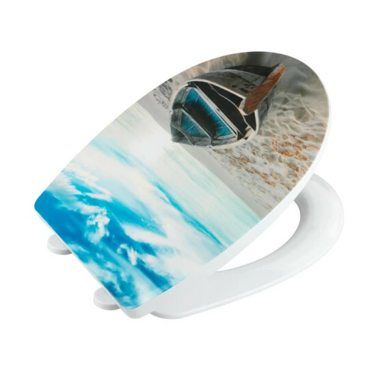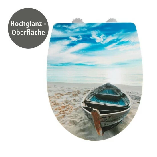 Der hochwertig verarbeitete WC-Sitz Boat aus Thermoplast hat eine klassische ovale Deckelform. Er verfügt nicht nur über einen angenehmen Sitzkomfort, sondern ist mit praktischen Zusatzfunktionen ausgestattet. Die attraktive hochglänzende Oberfläche kombiniert mit dem ausgefallenen Design wertet jedes Badezimmer auf und weckt die Sehnsucht nach Entspannung und Urlaub.