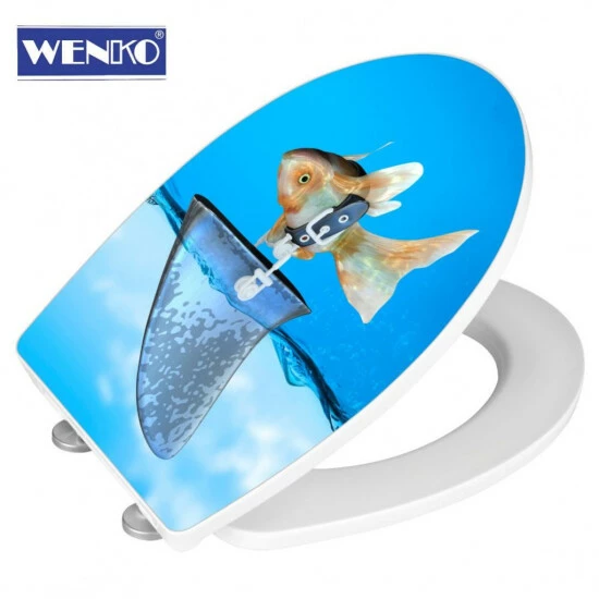 Die innovativen Acryl WC-Sitze von WENKO bringen frischen Schwung in jedes Bad und Gäste-WC. Der trendige WC-Sitz Sweet Shark ist aus hochwertigem Duroplast gefertigt und mit einer hochglänzenden Acryloberfläche ausgestattet. Neben dem individuellen, witzigen Fisch-Design verfügt der komfortable WC-Sitz über praktische Zusatzfunktionen.