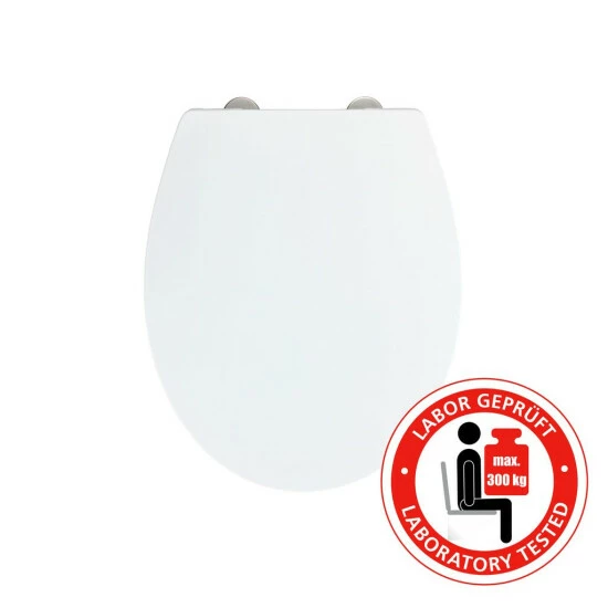 Der Toilettensitz ist mit 300 KG belastbar, somit langlebig und robust. Die Belastung des WC-Sitzes mit 300 KG wurde durch ein akkreditiertes Labor bestätigt.